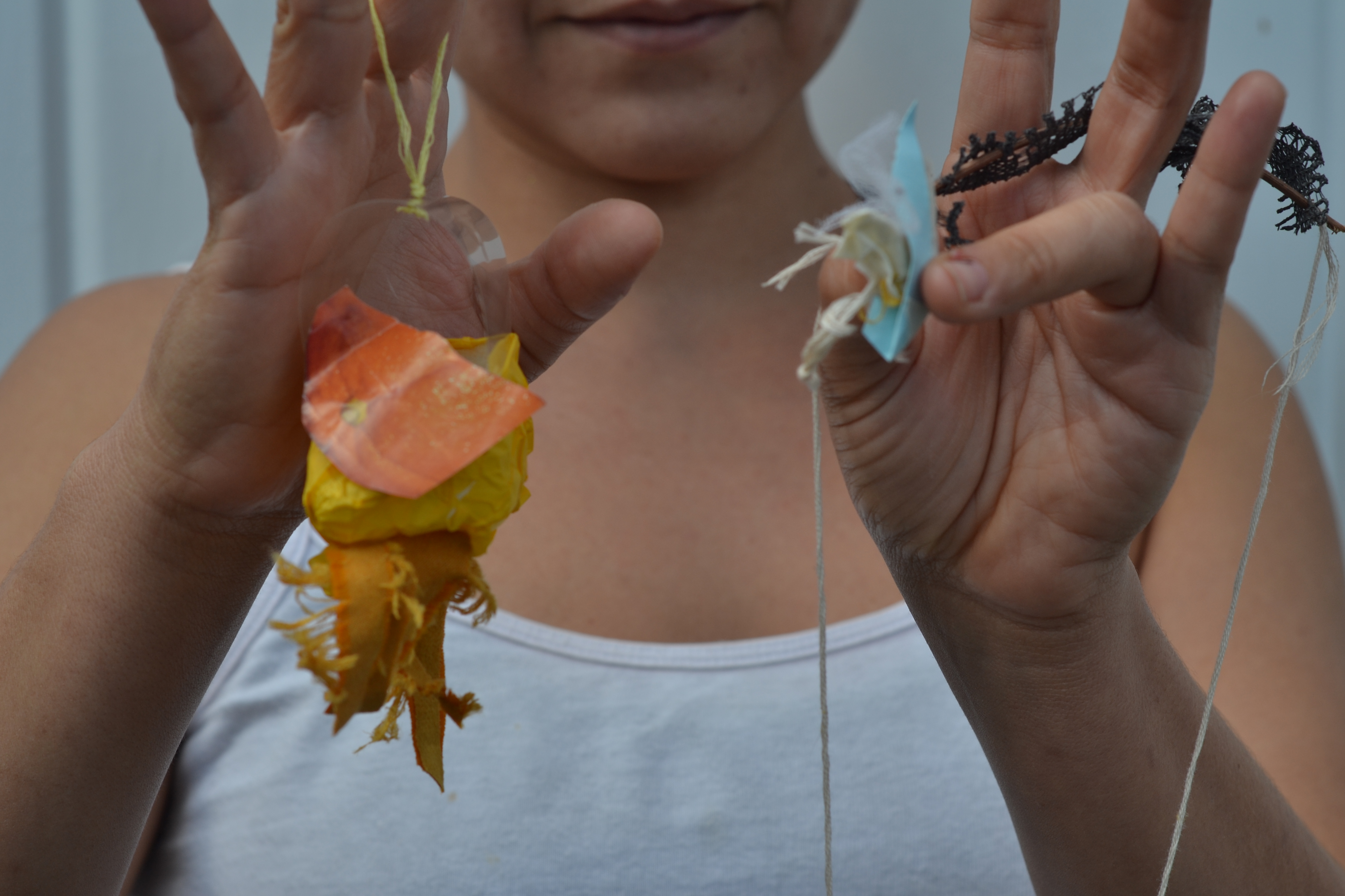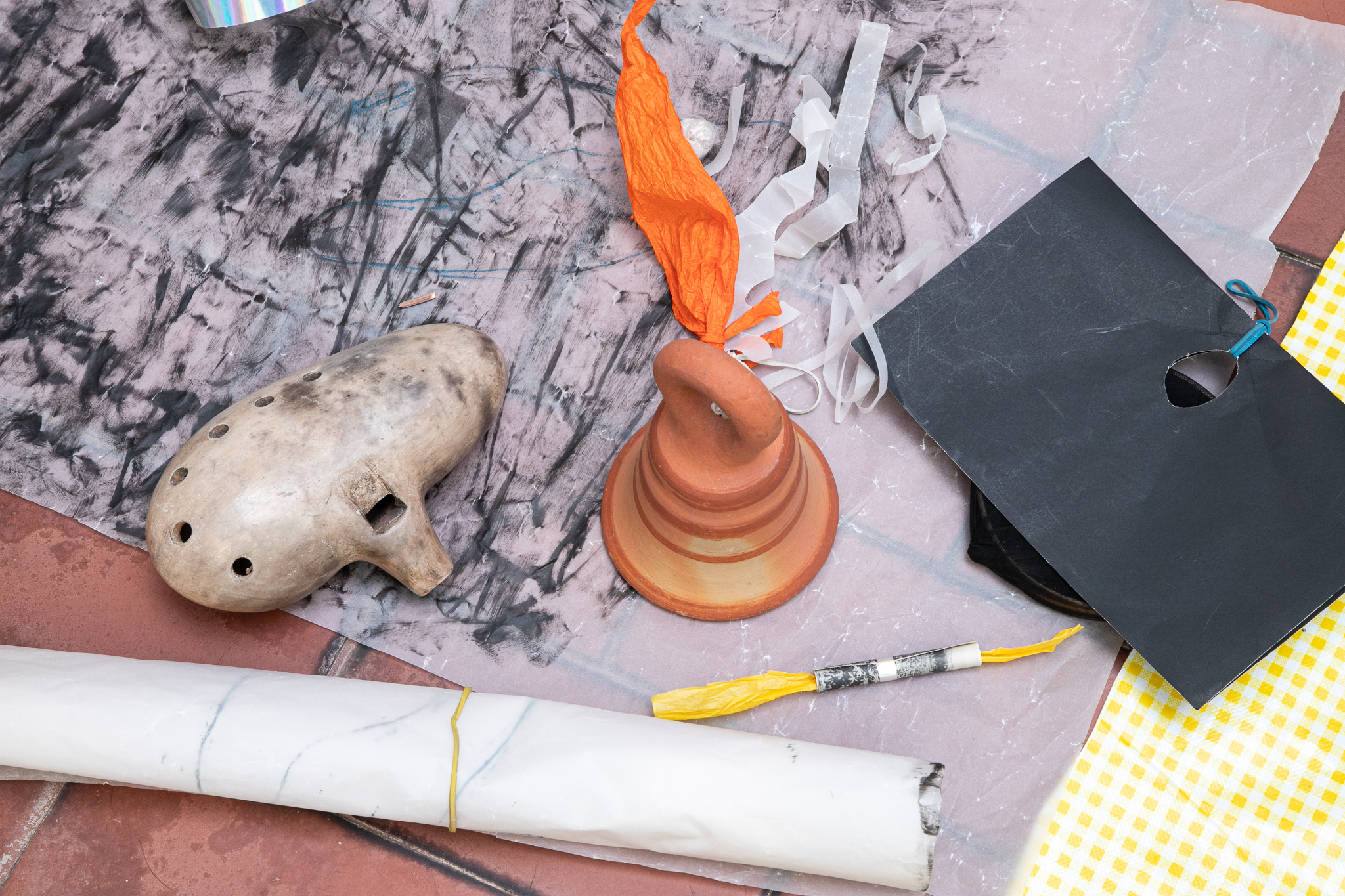 Instumentos de papel y barro que usamos para el taller: