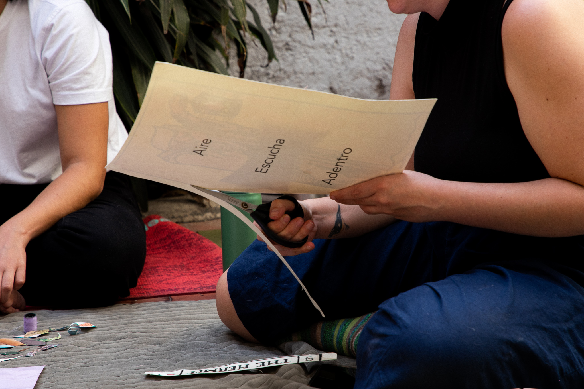 A partir de una meditación / exploración sonora - corporal que recorrió distintos entrecuerpos, cada asistente escogió uno o más entrecuerpo para explorarlo a tavés del movimiento, el sonido y las sensaciones / afectos en tornoa a él. A partir de explorar el sonido y la textura del papel, se acuerparon los entrecuerpos de cada participante.