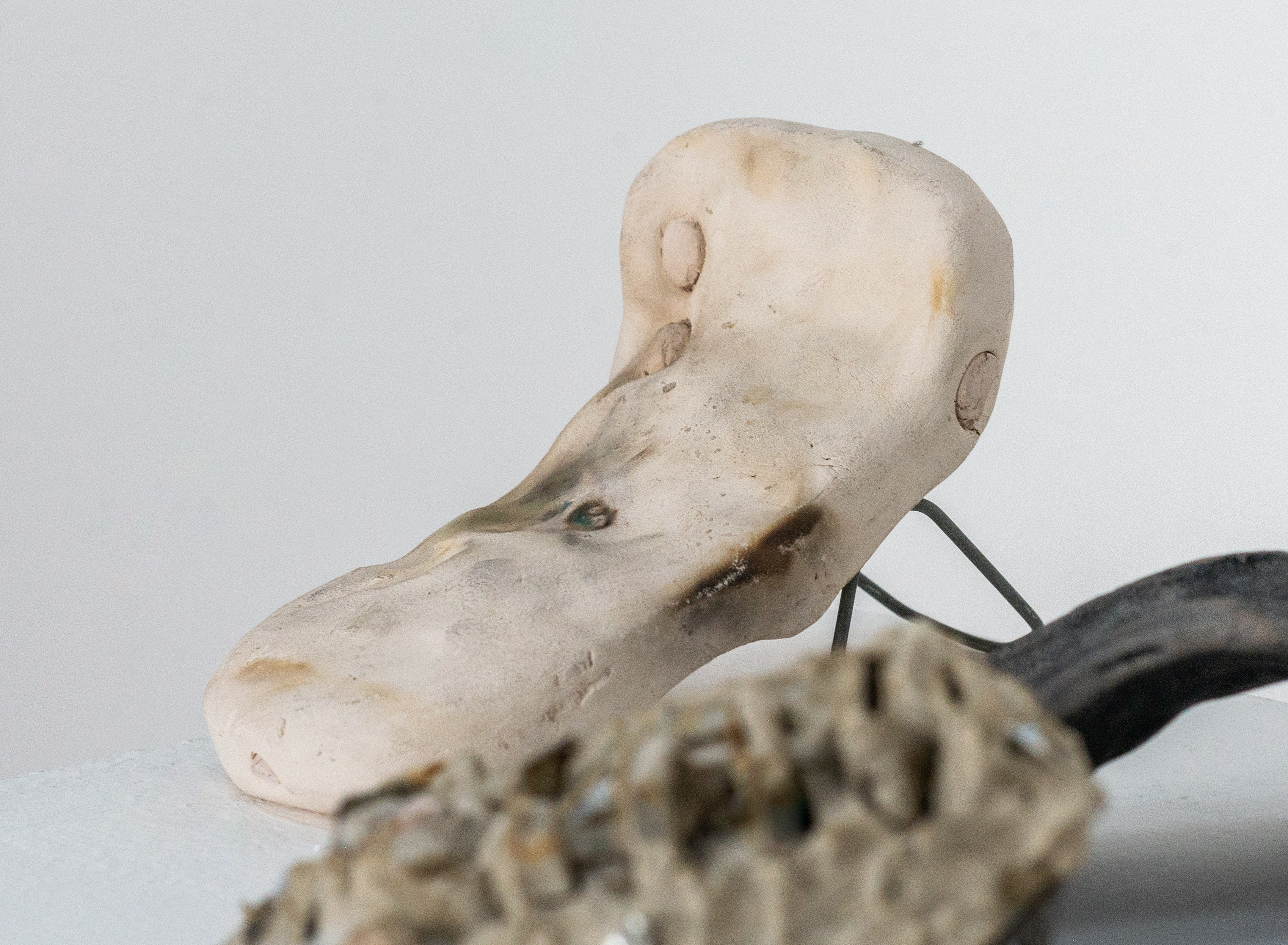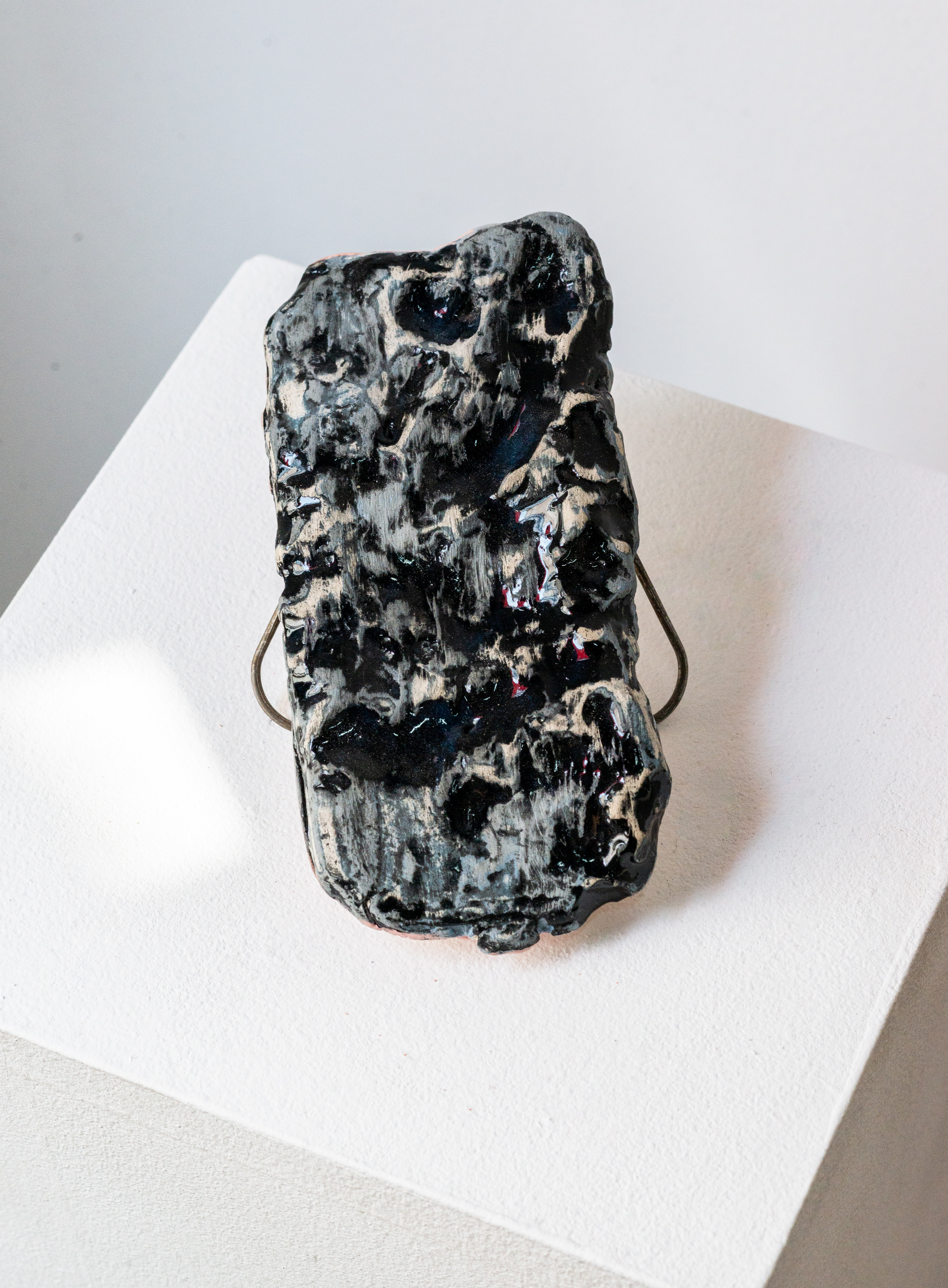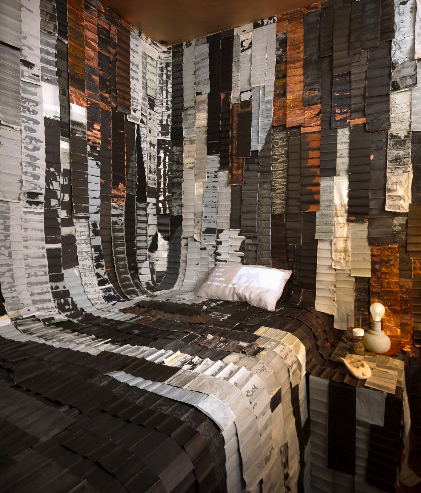 Litemia .01 (2024–2025), an initial artistic exploration, resulted in an art installation portraying the pharaceutical dimension of lithium as a fallible container or house, executed through more than 200 discarded batteries and in dialogue with the performativity of toxic materials.
