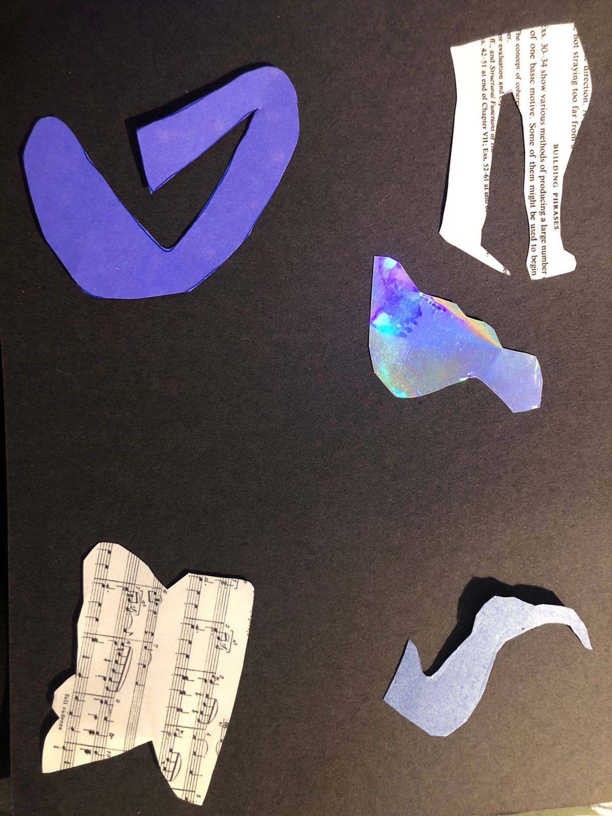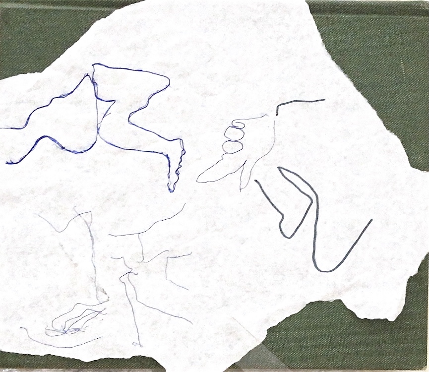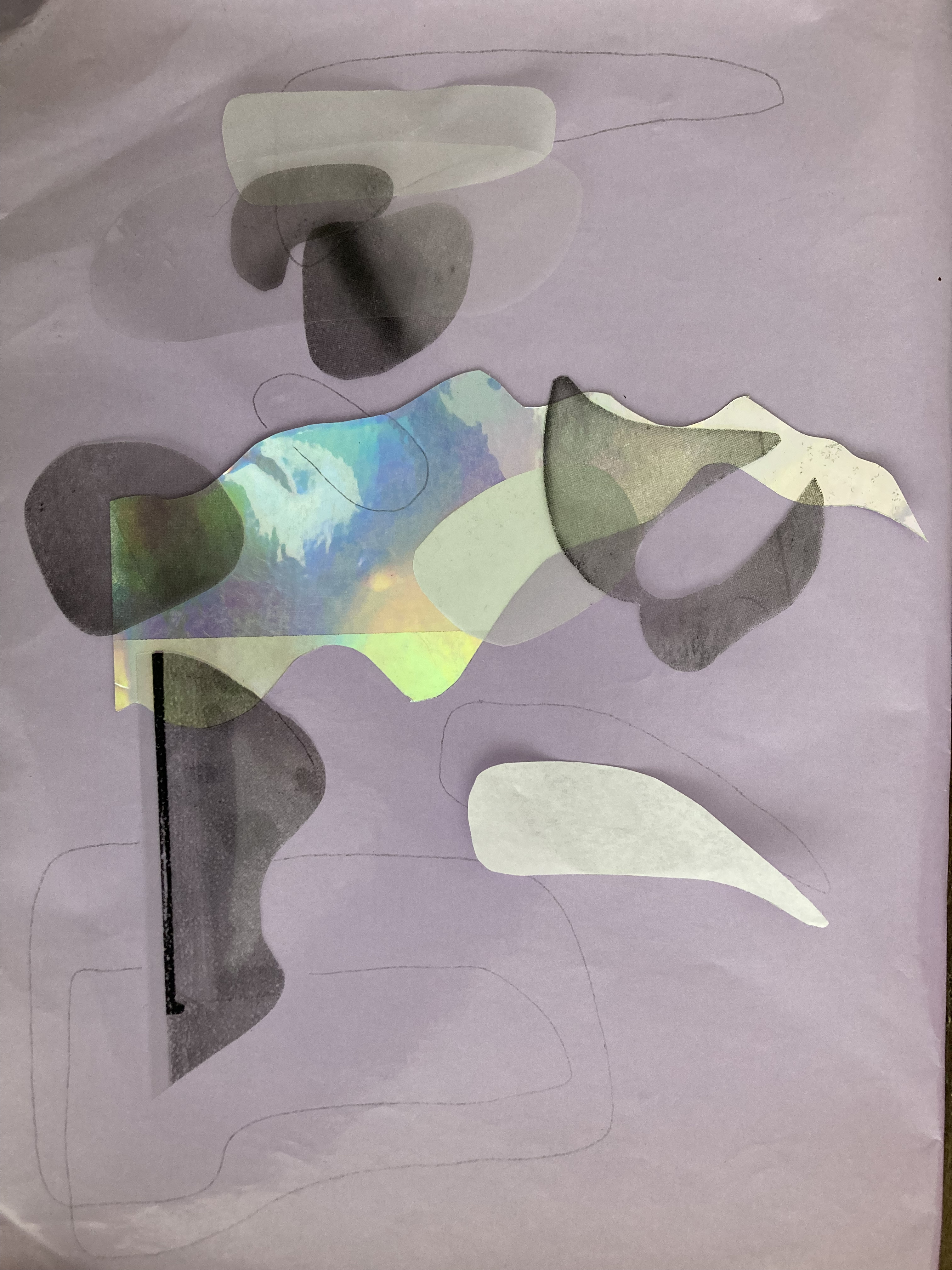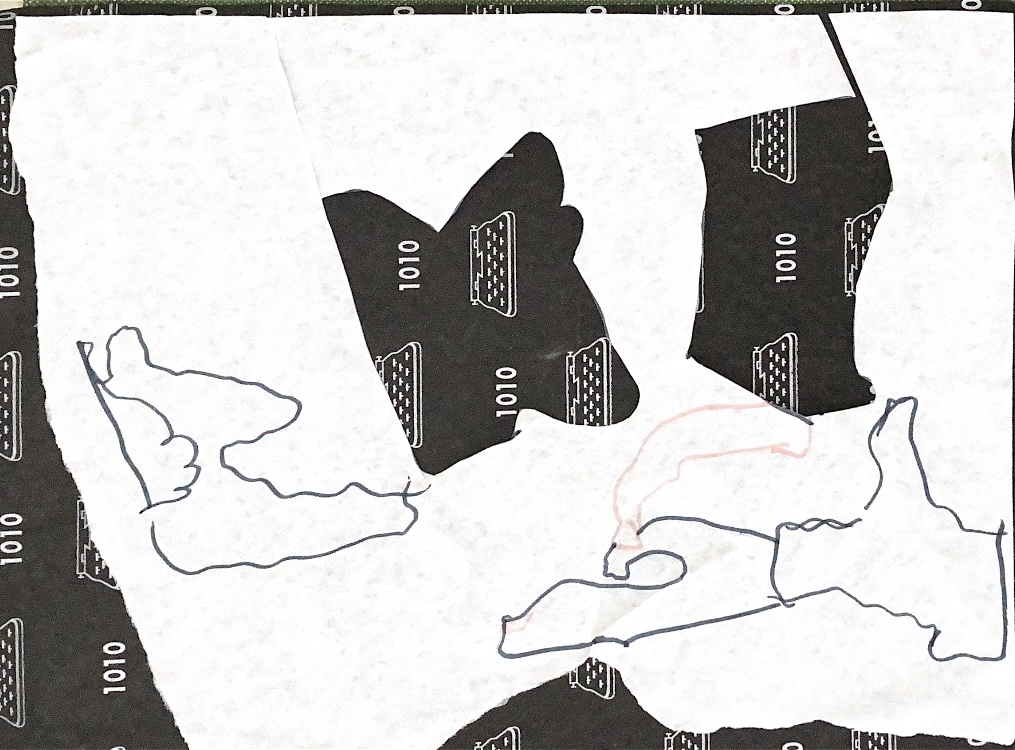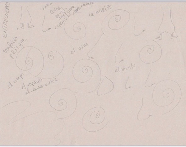 A partir de una pieza de poesía sonora y una meditación, las participantes exploraron sus entrecuerpos (espacios negativos del cuerpo) y las del resto del grupo para vaciarlos en collages de papel.